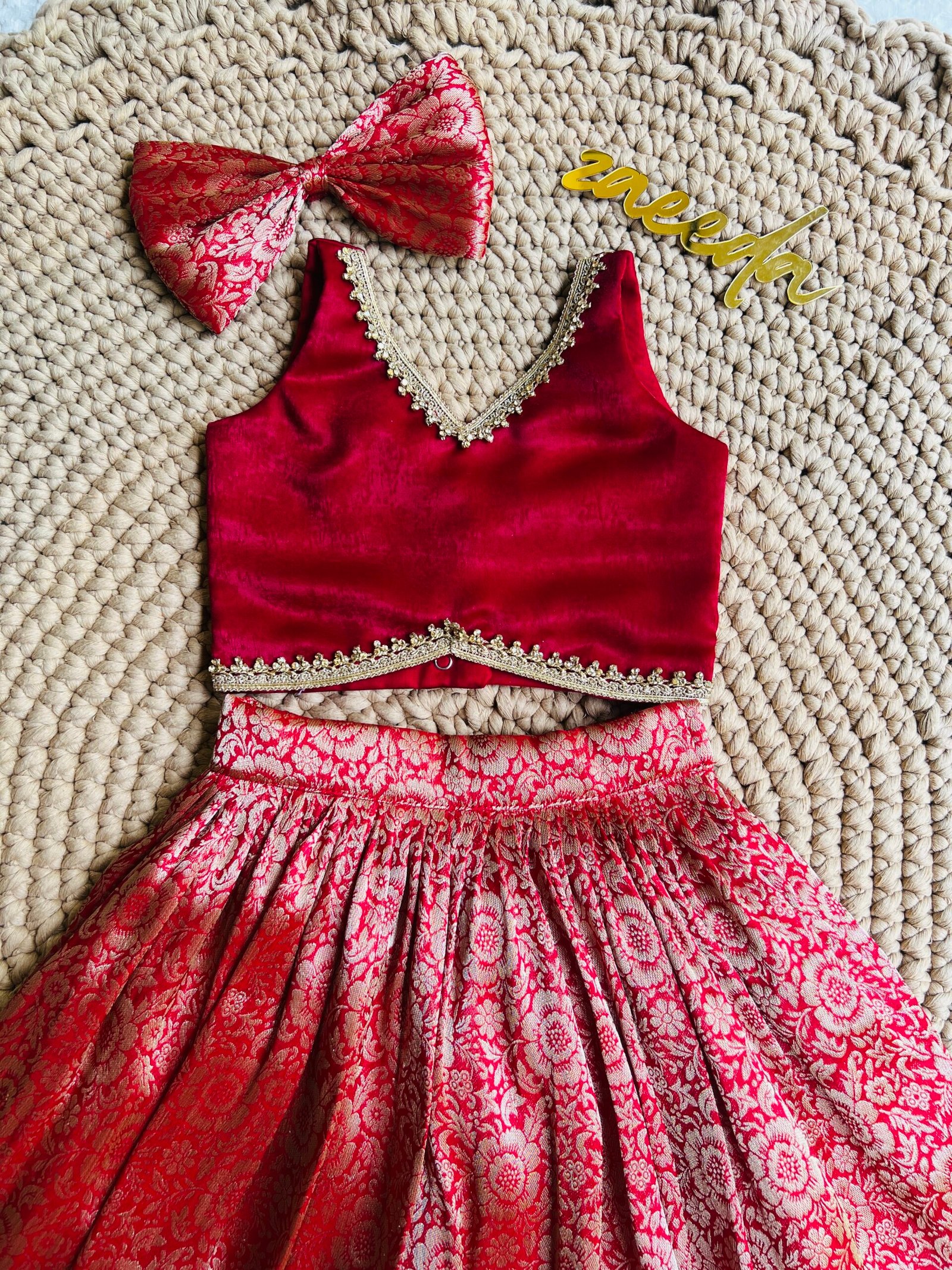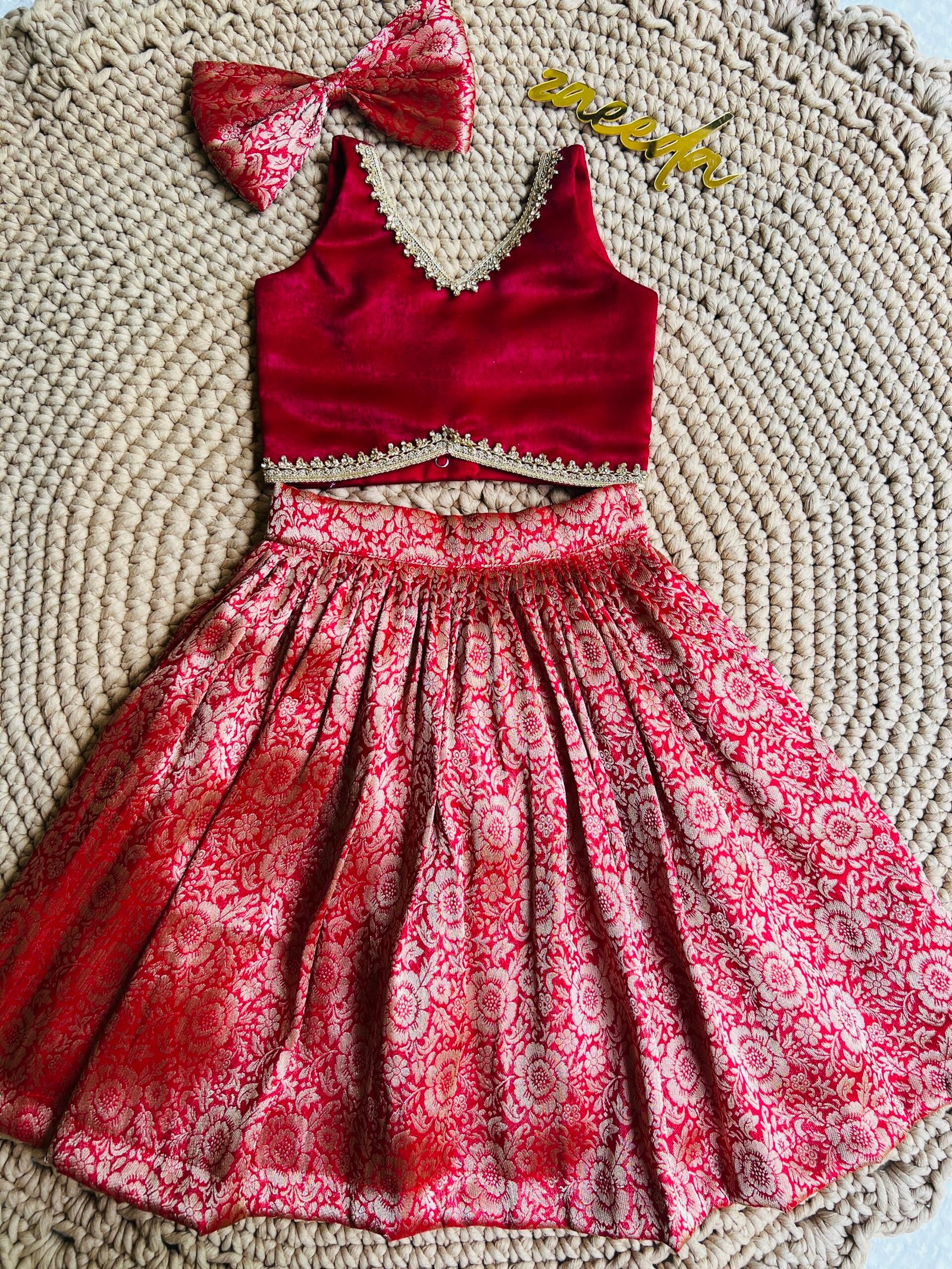 - MATERIAL:- BANARASI SKIRT AND SOFT VELVET TOP