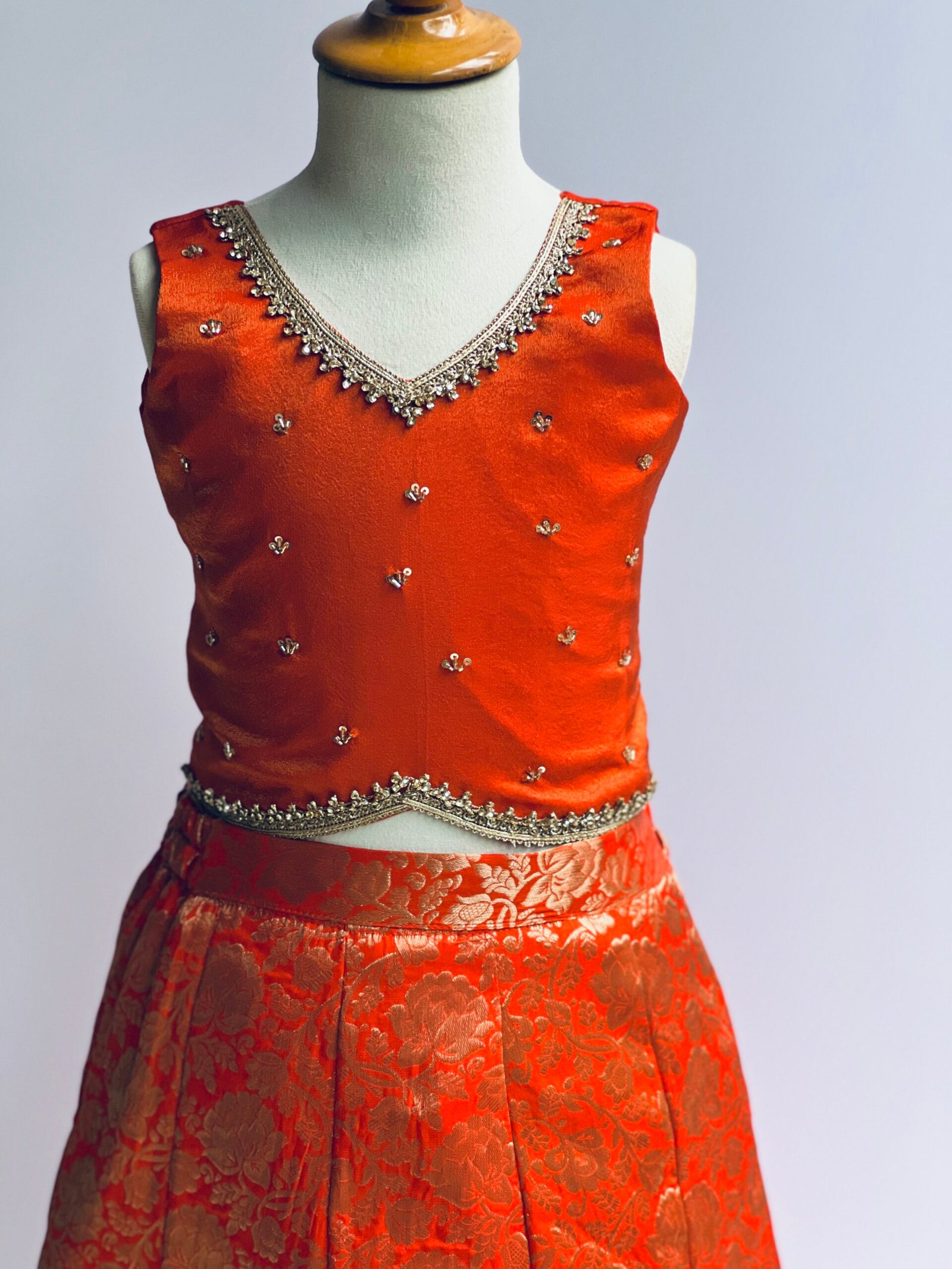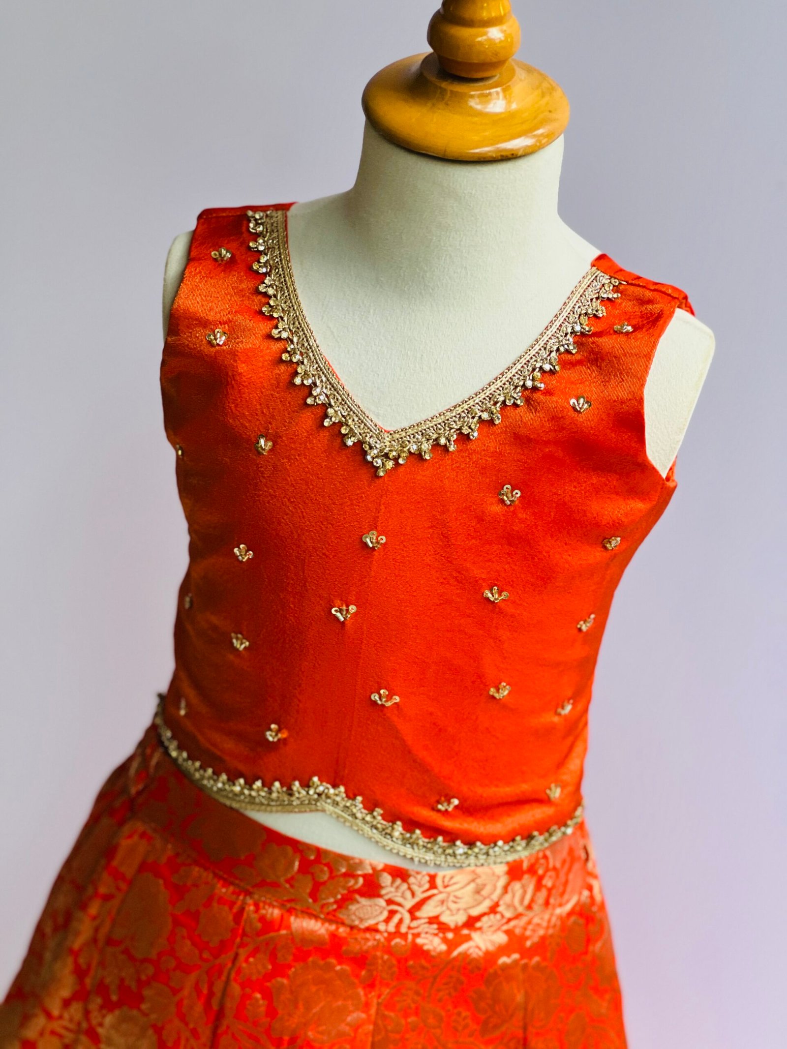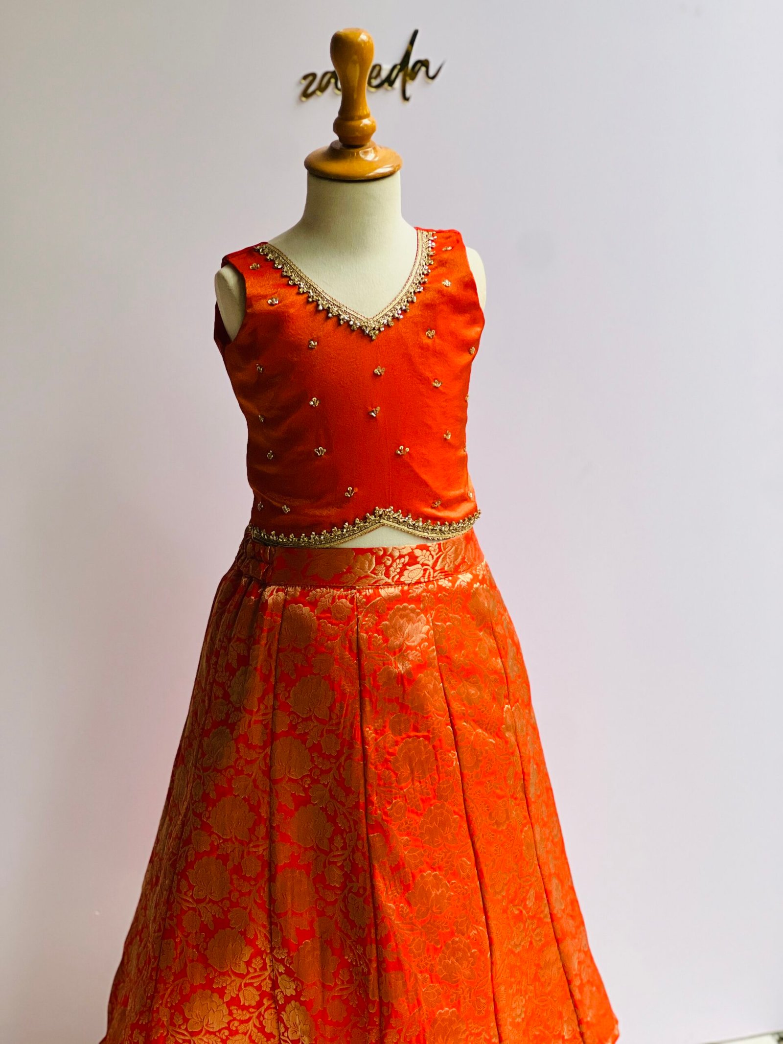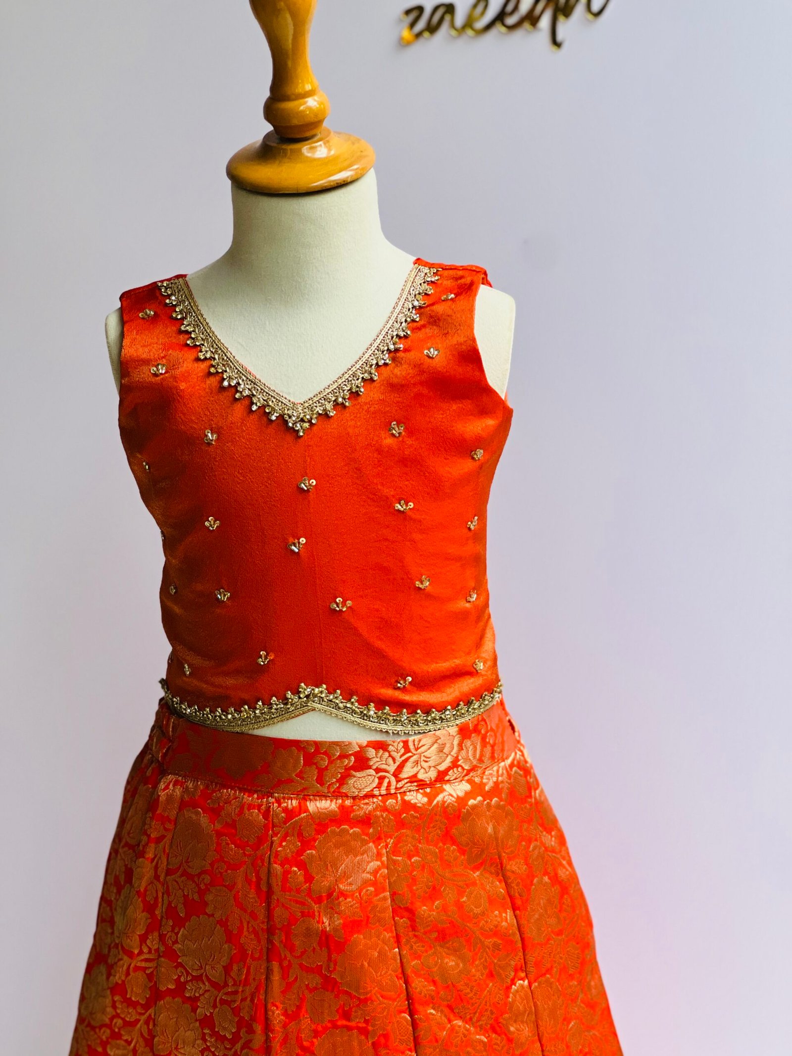 BANARASI ORANGE COLOUR PANAL SKIRT AND CROP TOP