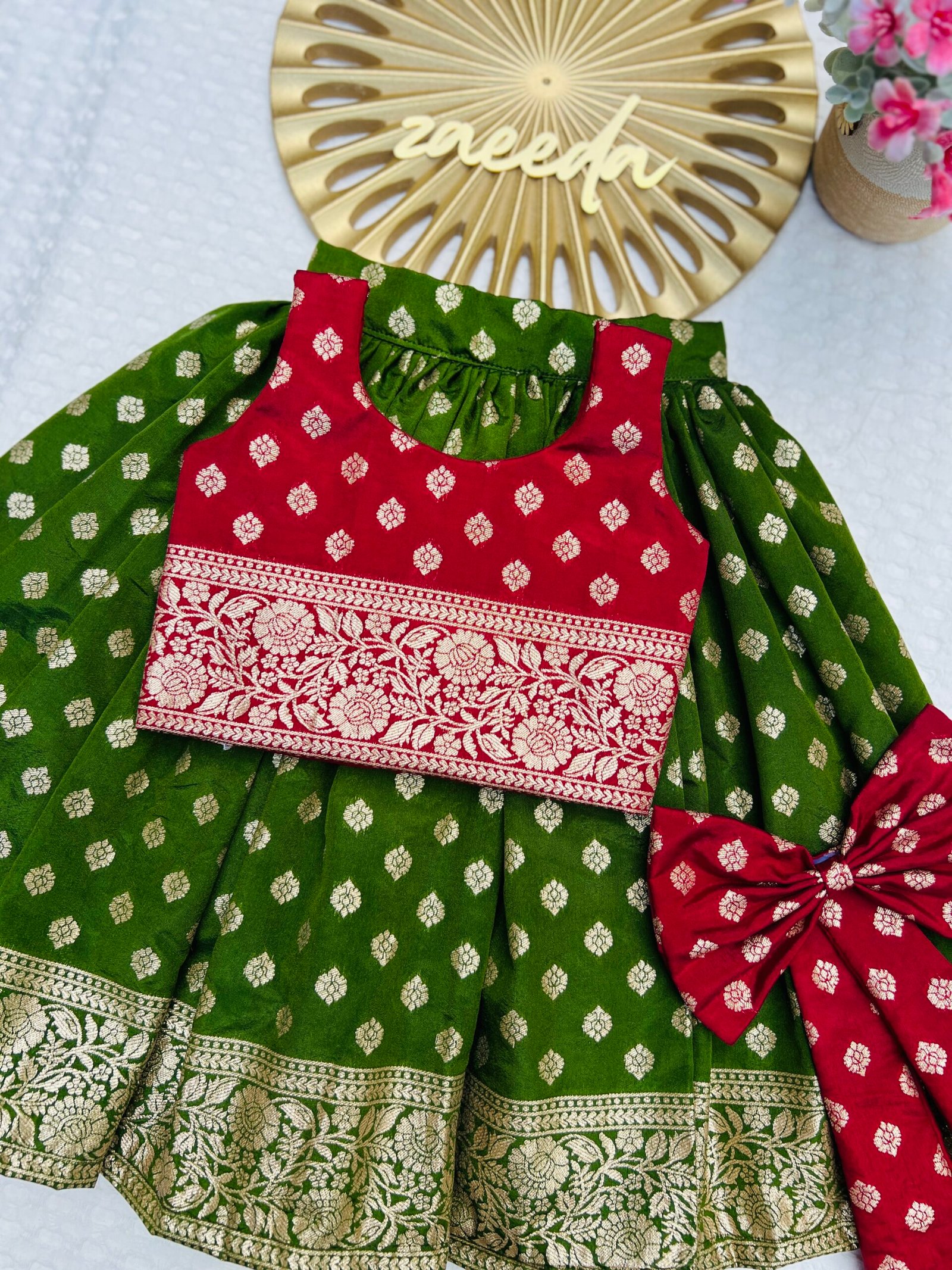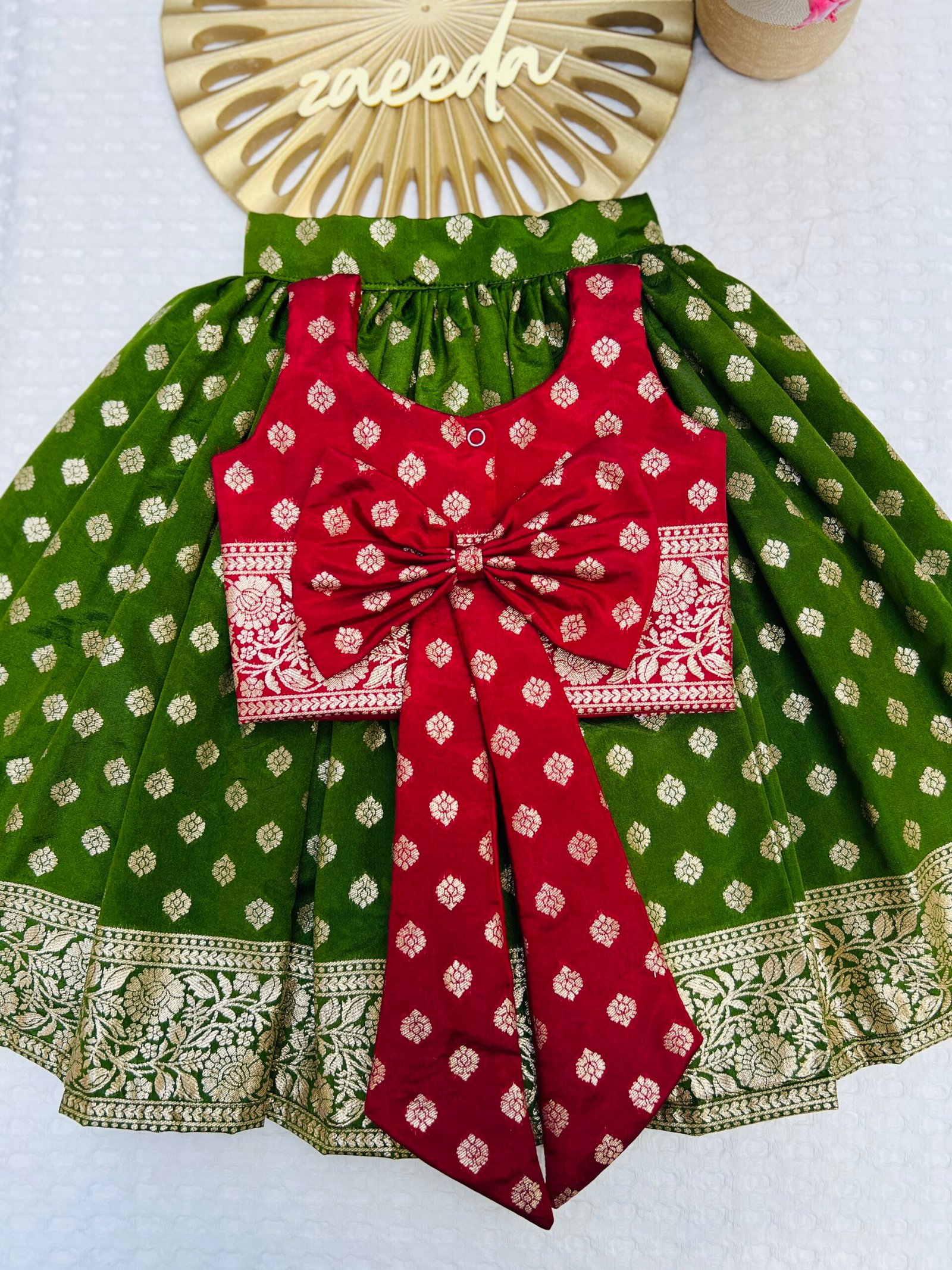 Be the first to review “CHANDERI SILK GREEN AND RED SKIRT& TOP”