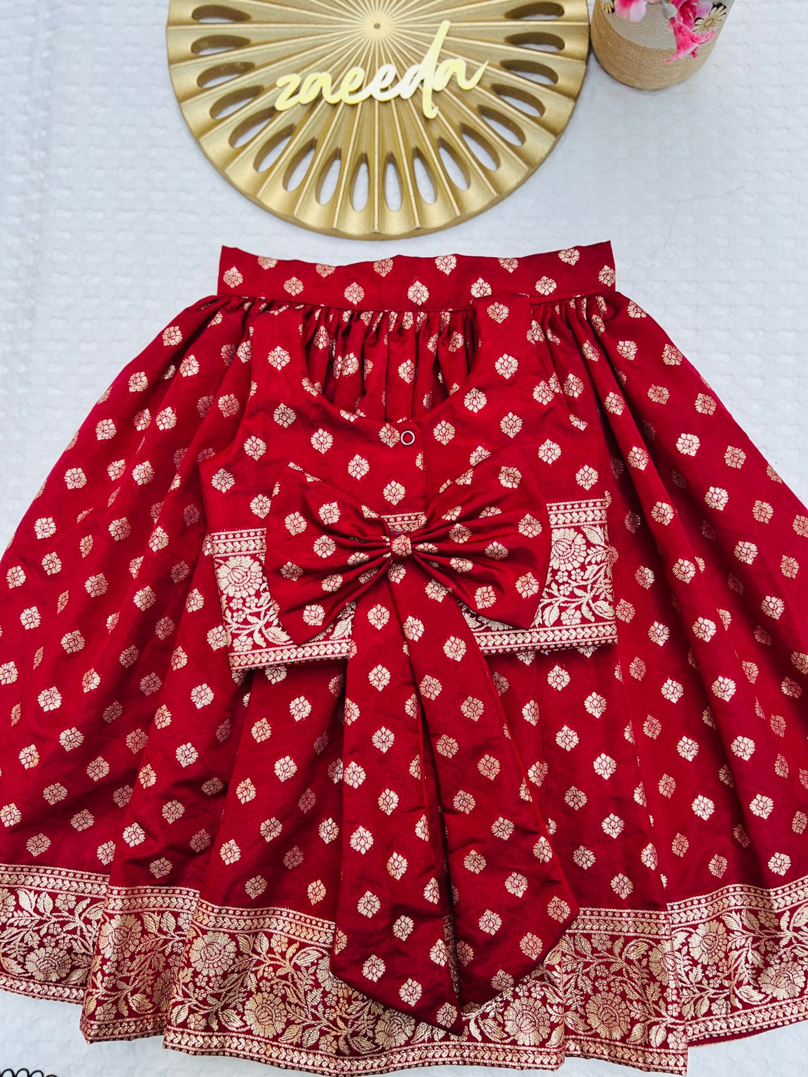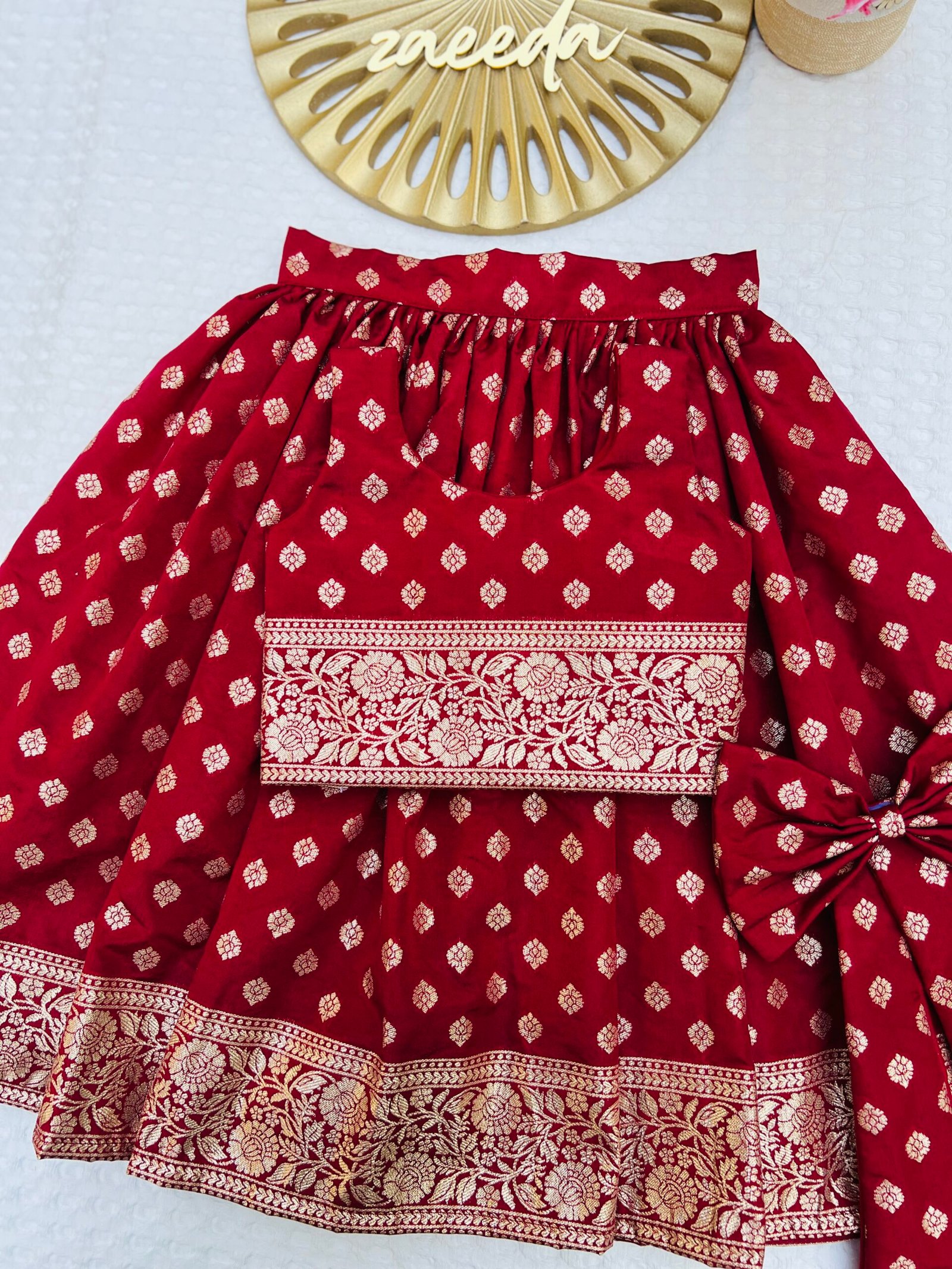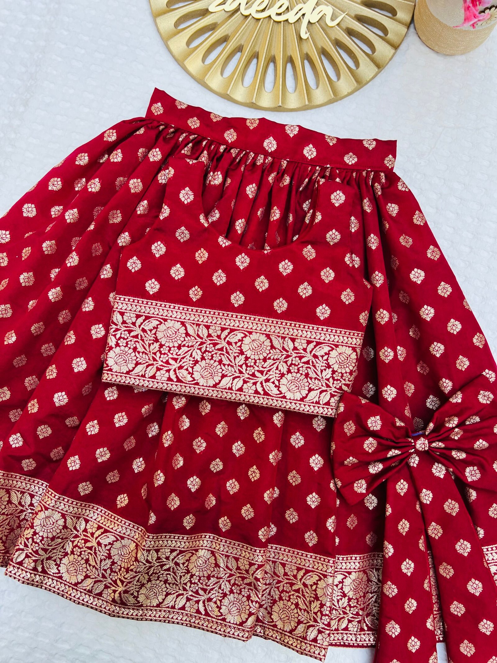 CHANDERI SILK RED COLOUR SKIRT AND TOP