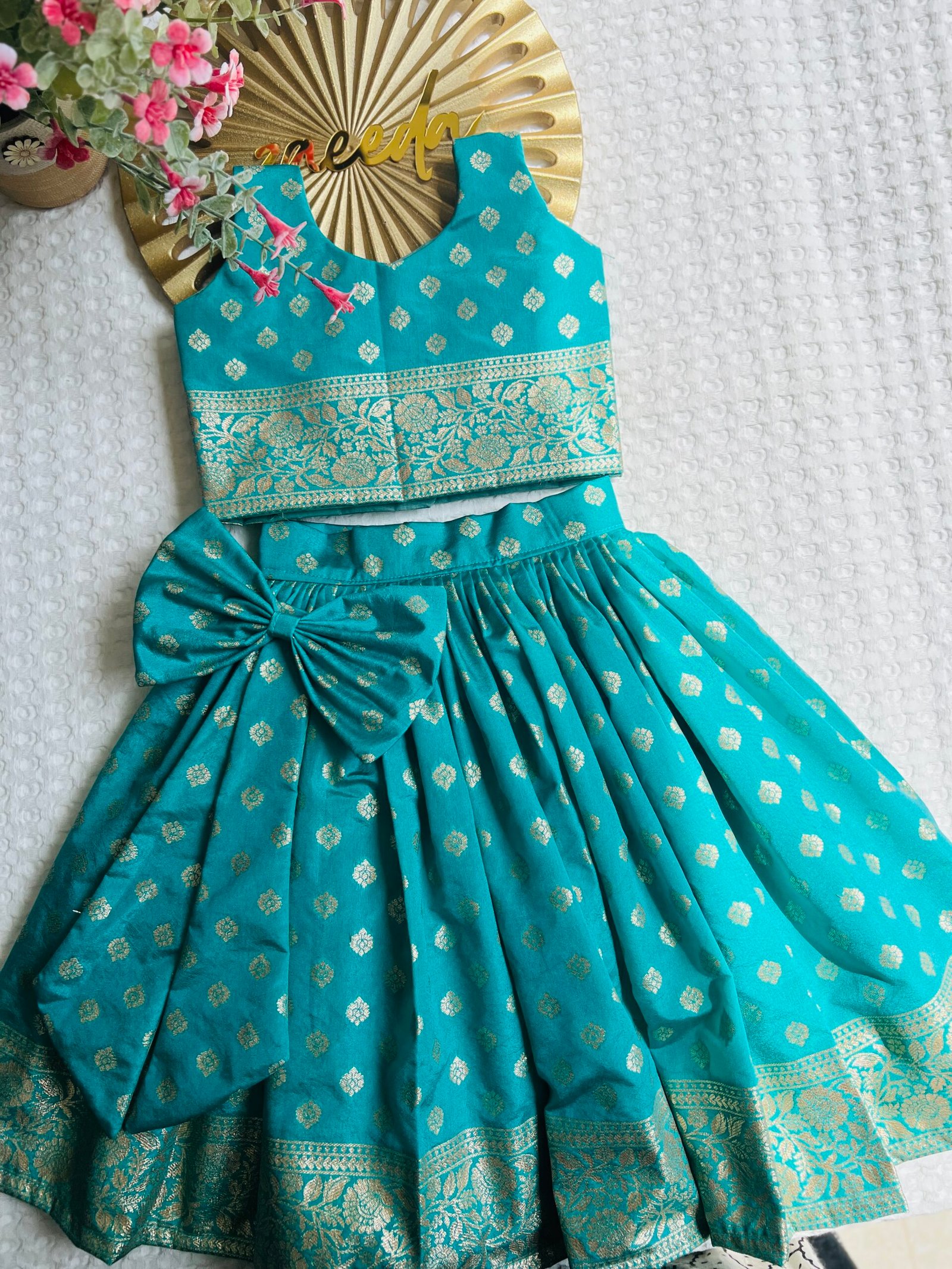 CHANDERI SILK SKY BLUE SKIRT AND CROP TOP