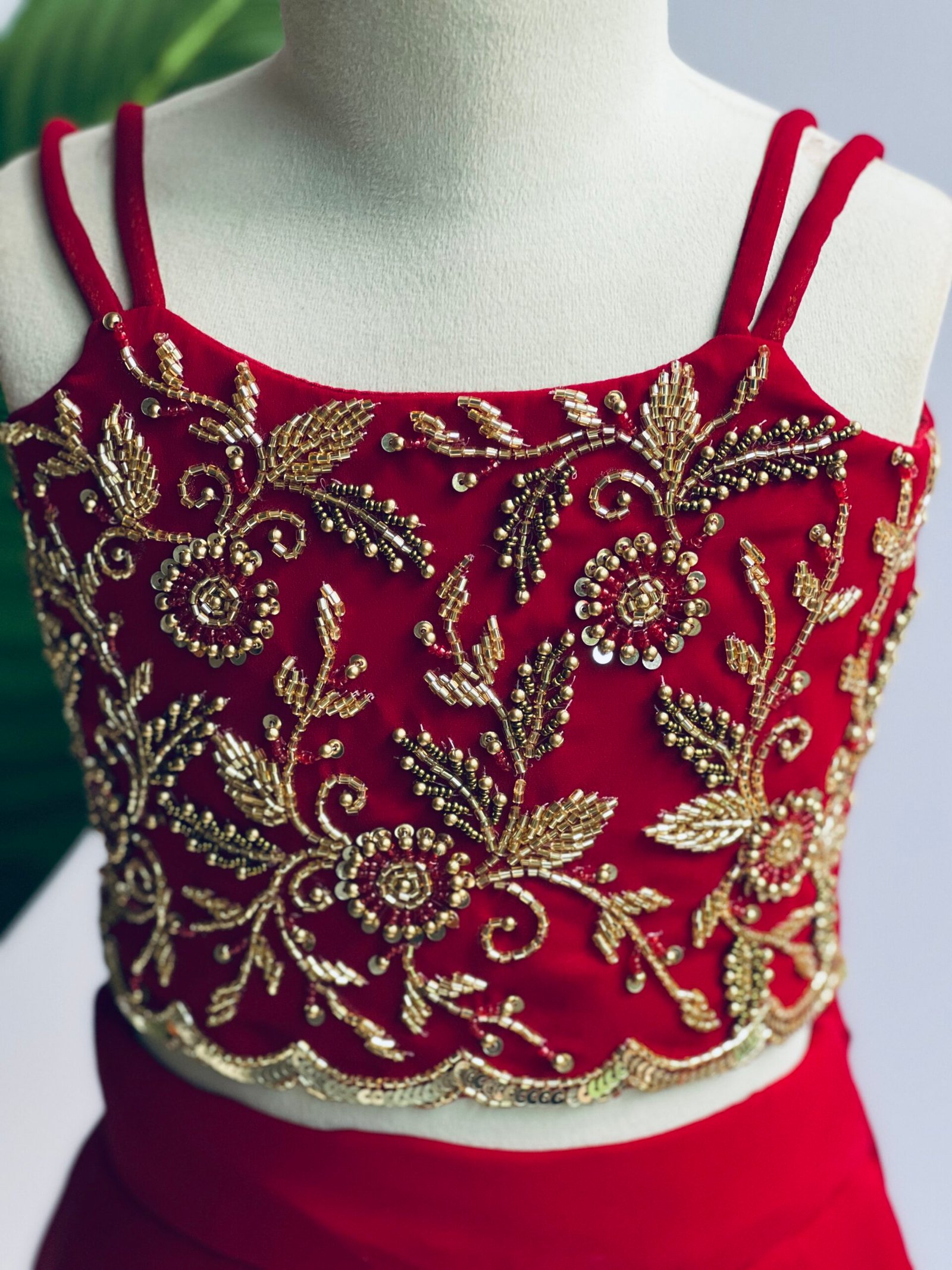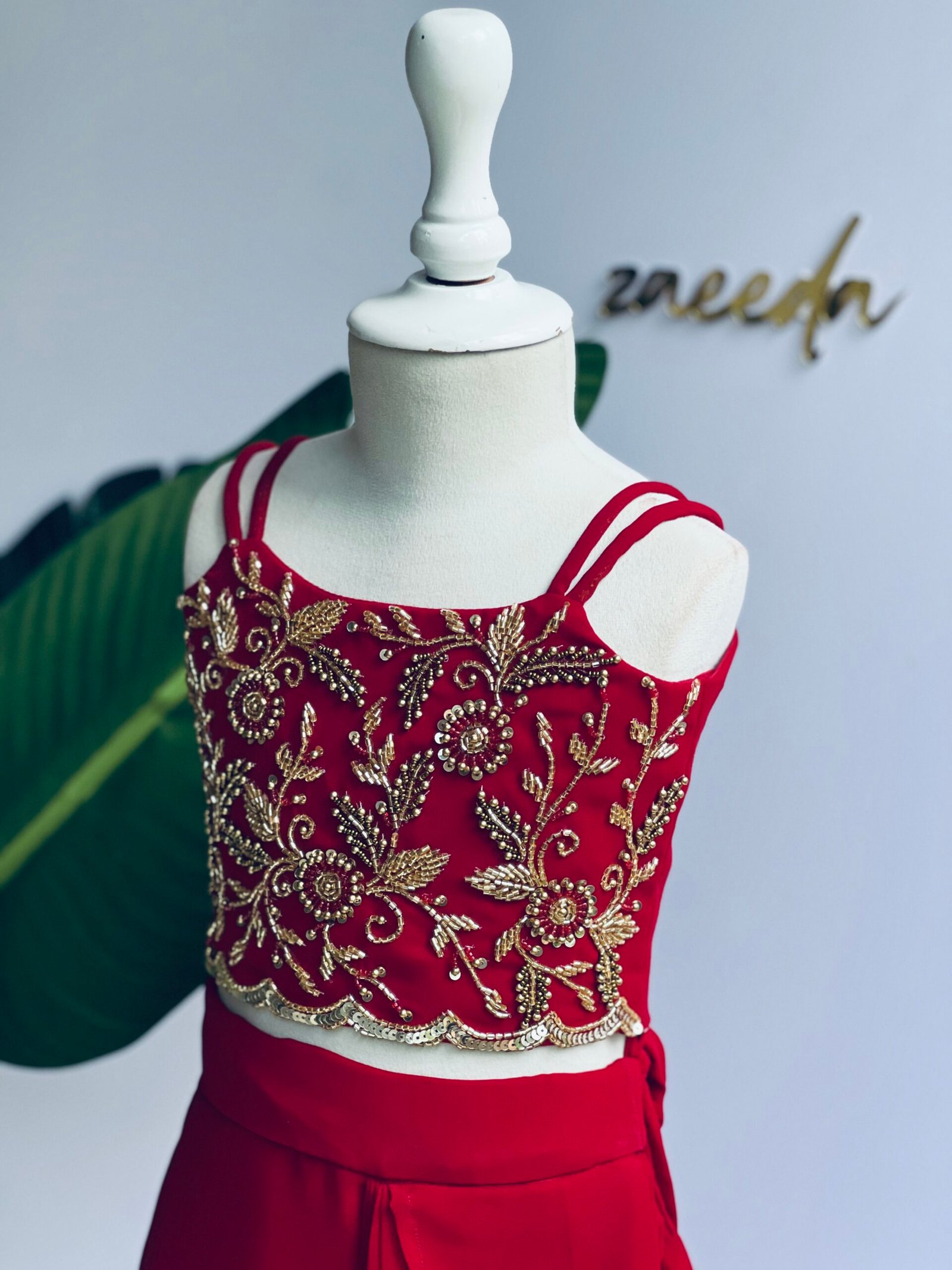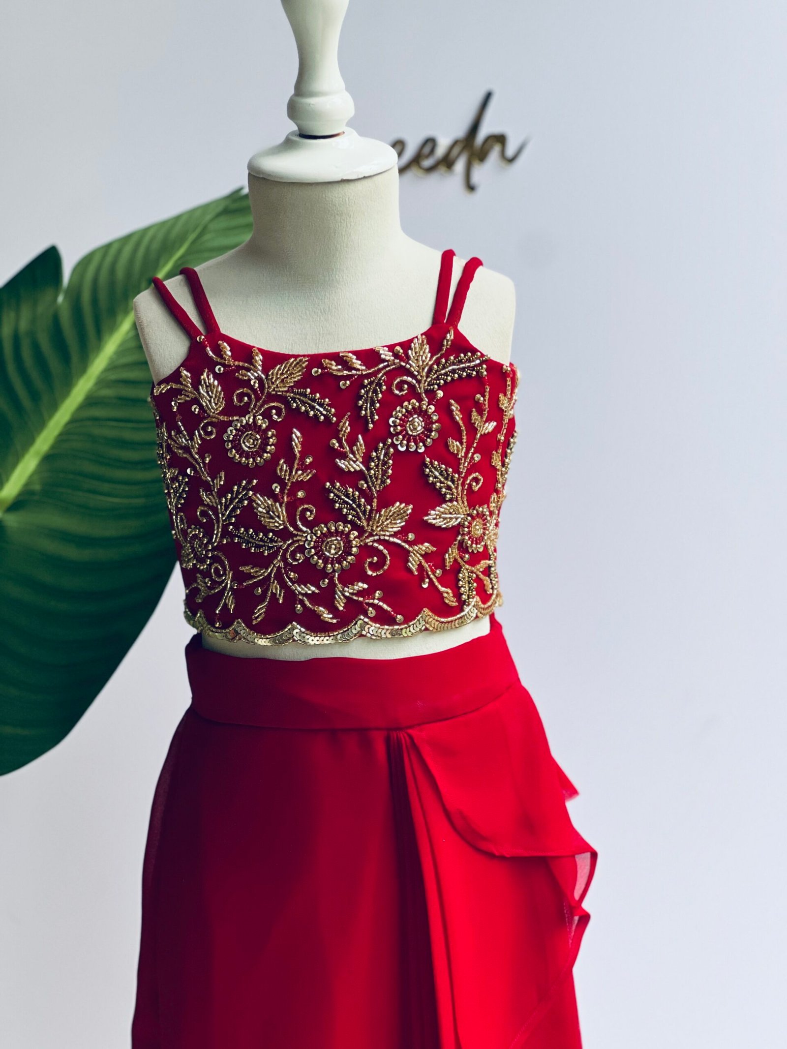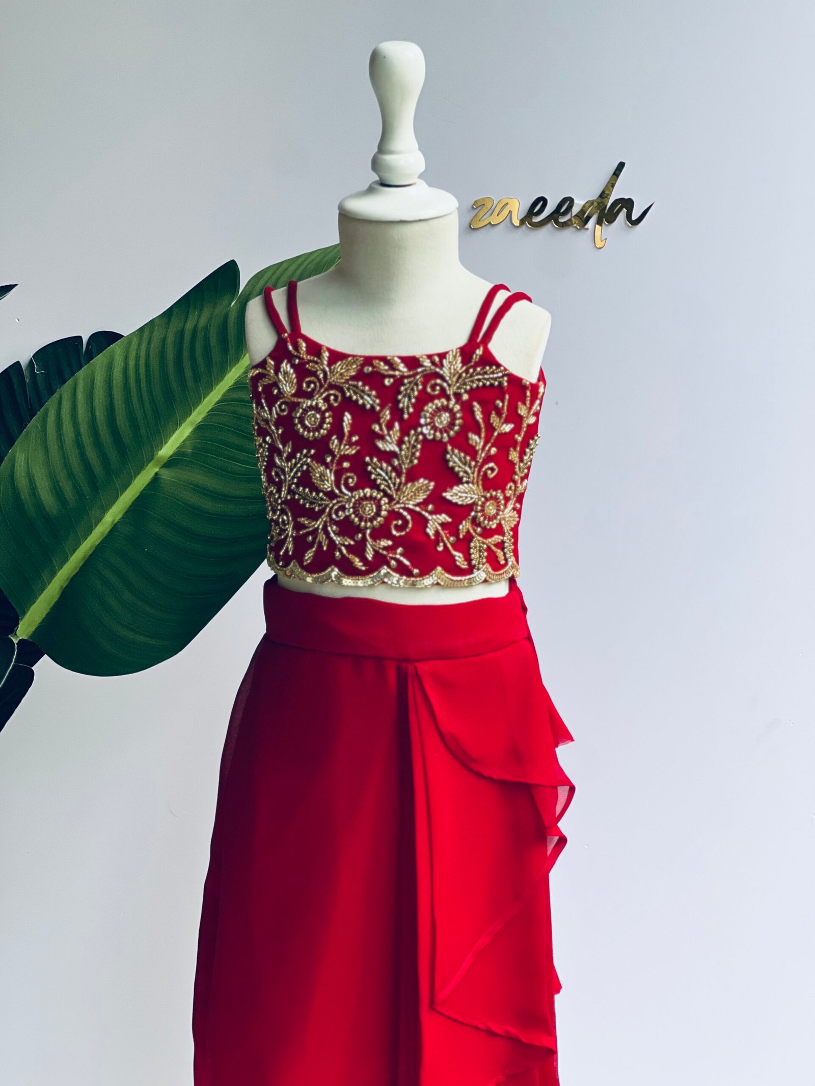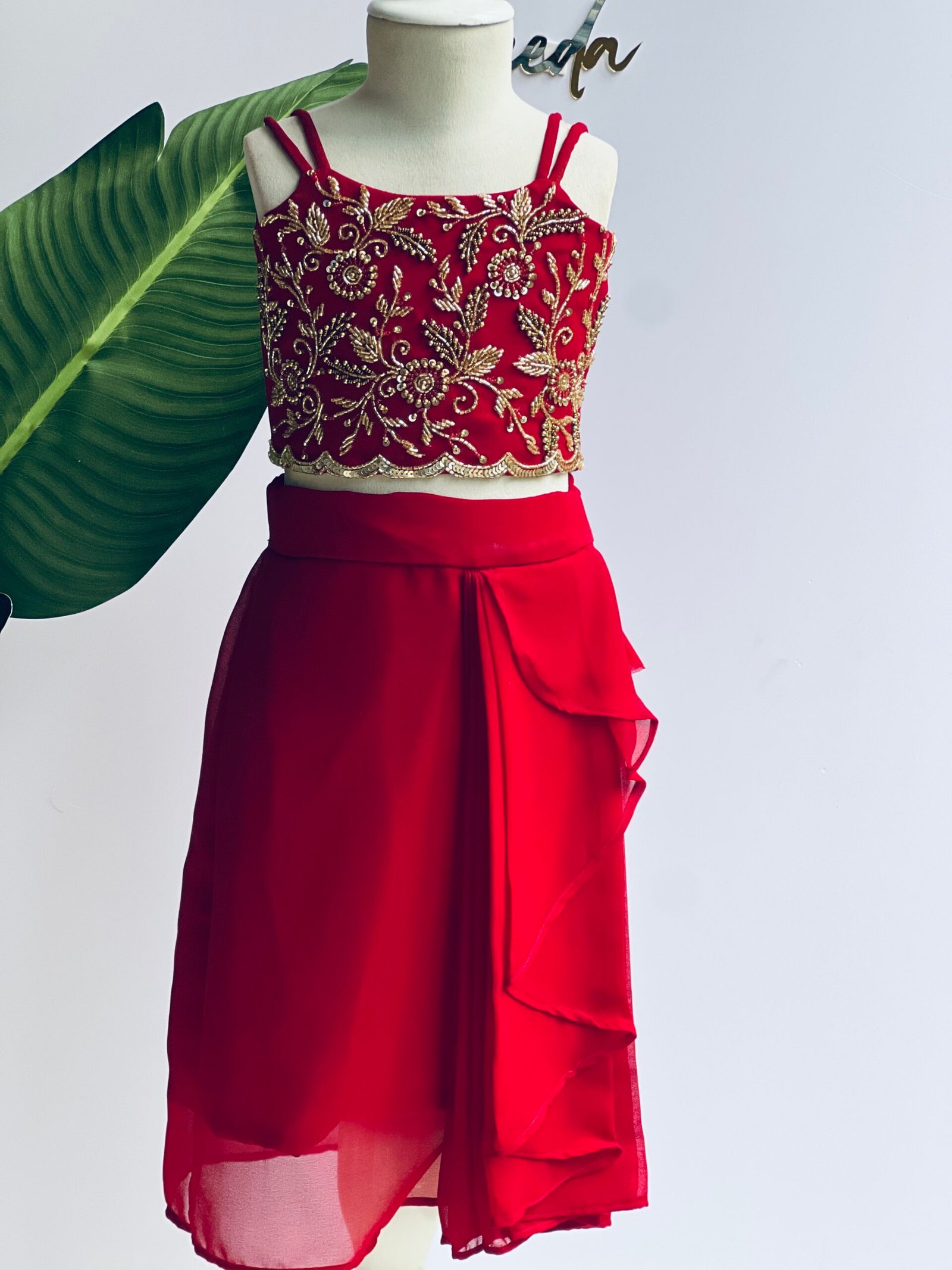 CHILLI RED DRAPING SKIRT WITH HAND WORK TOP