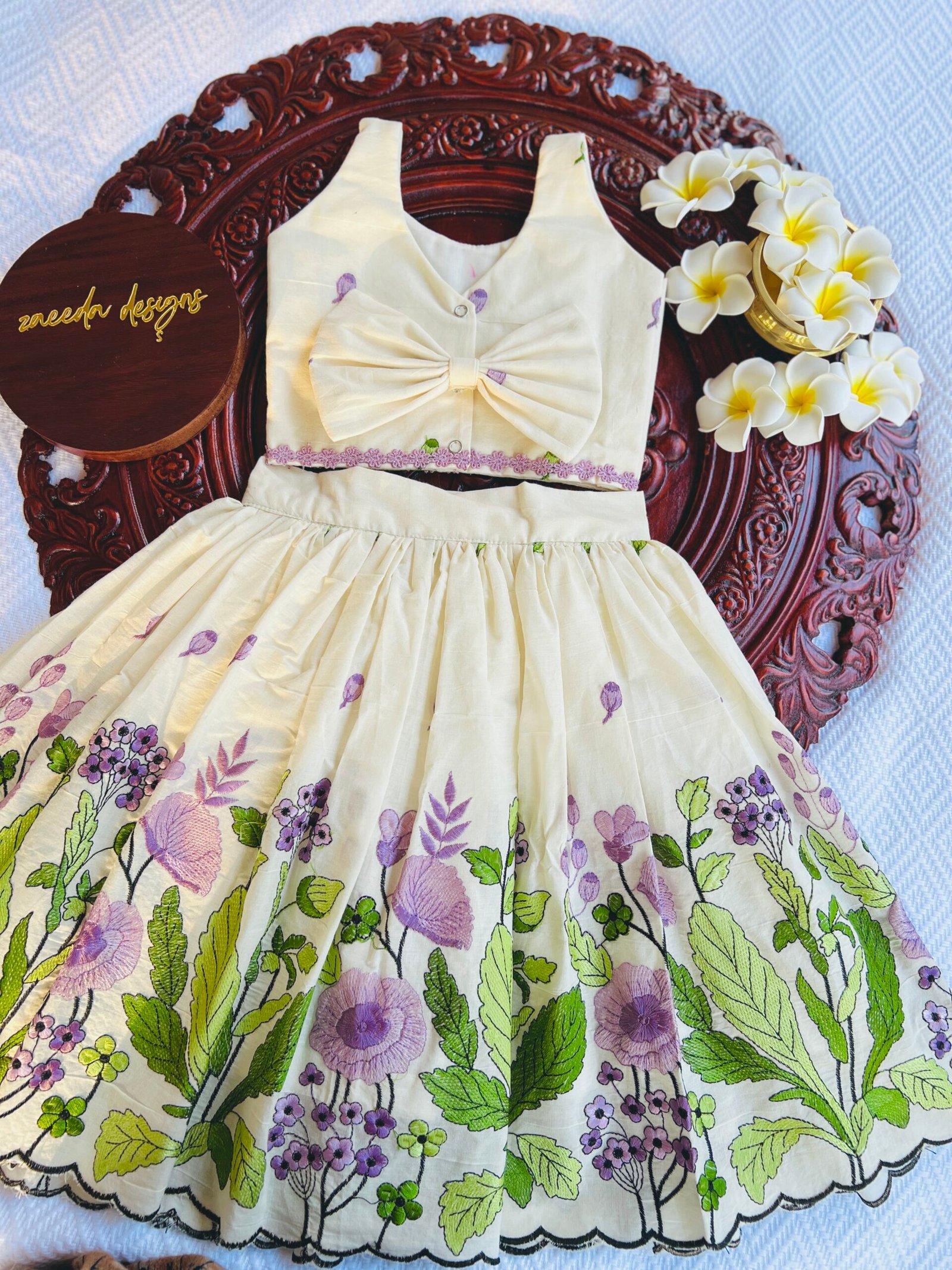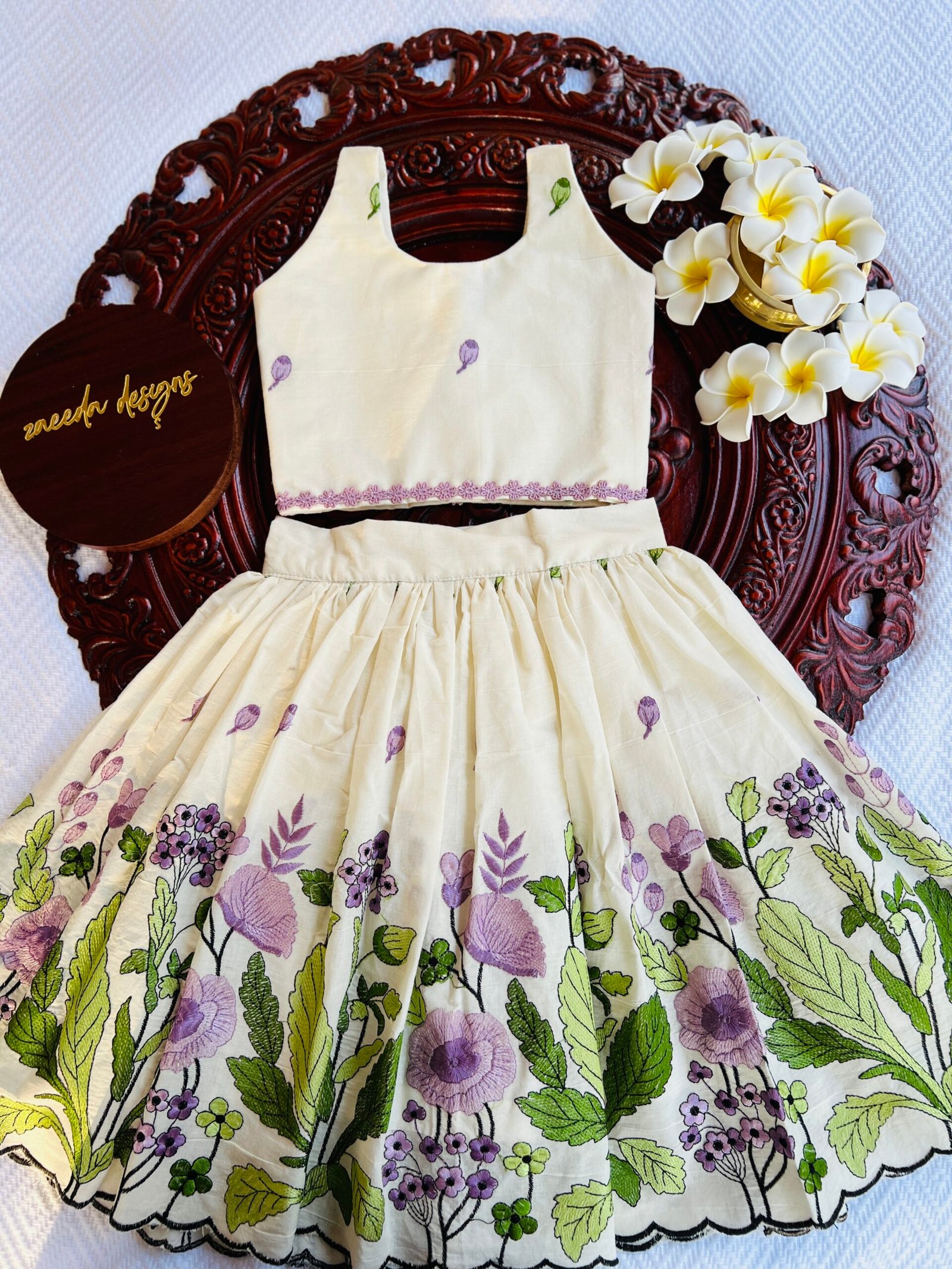 CORA COTTON EMBROIDERY LAVENDER COLOUR SKIRT&TOP