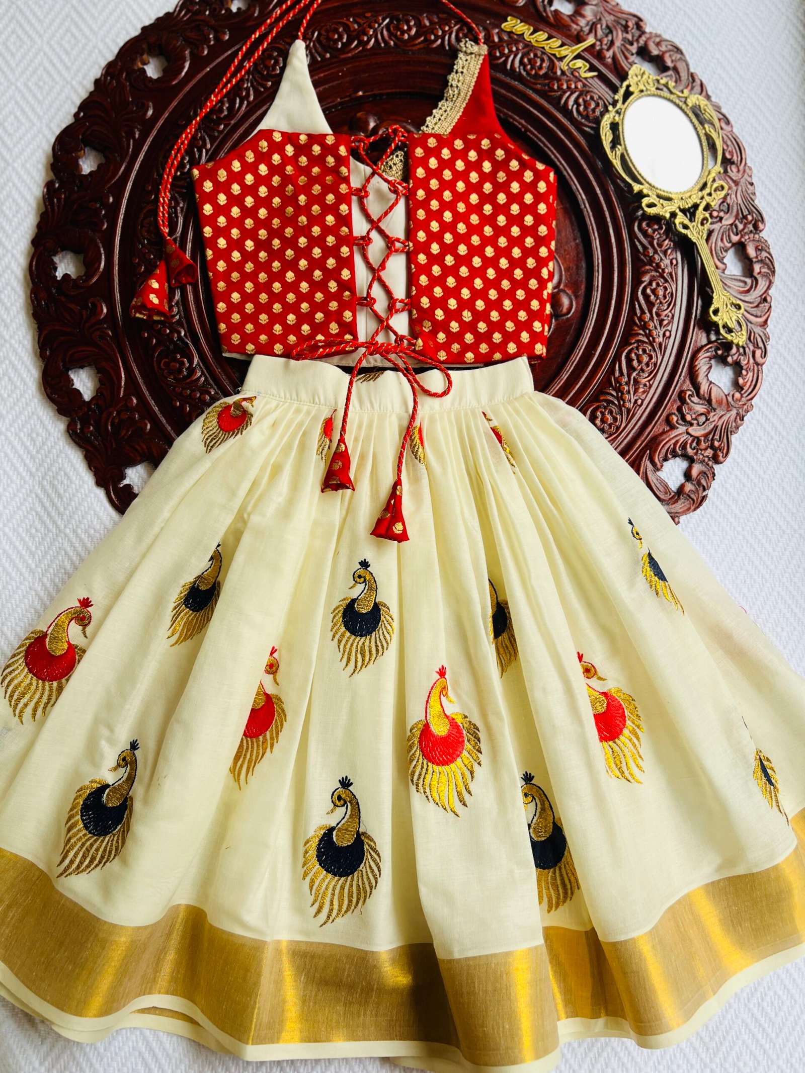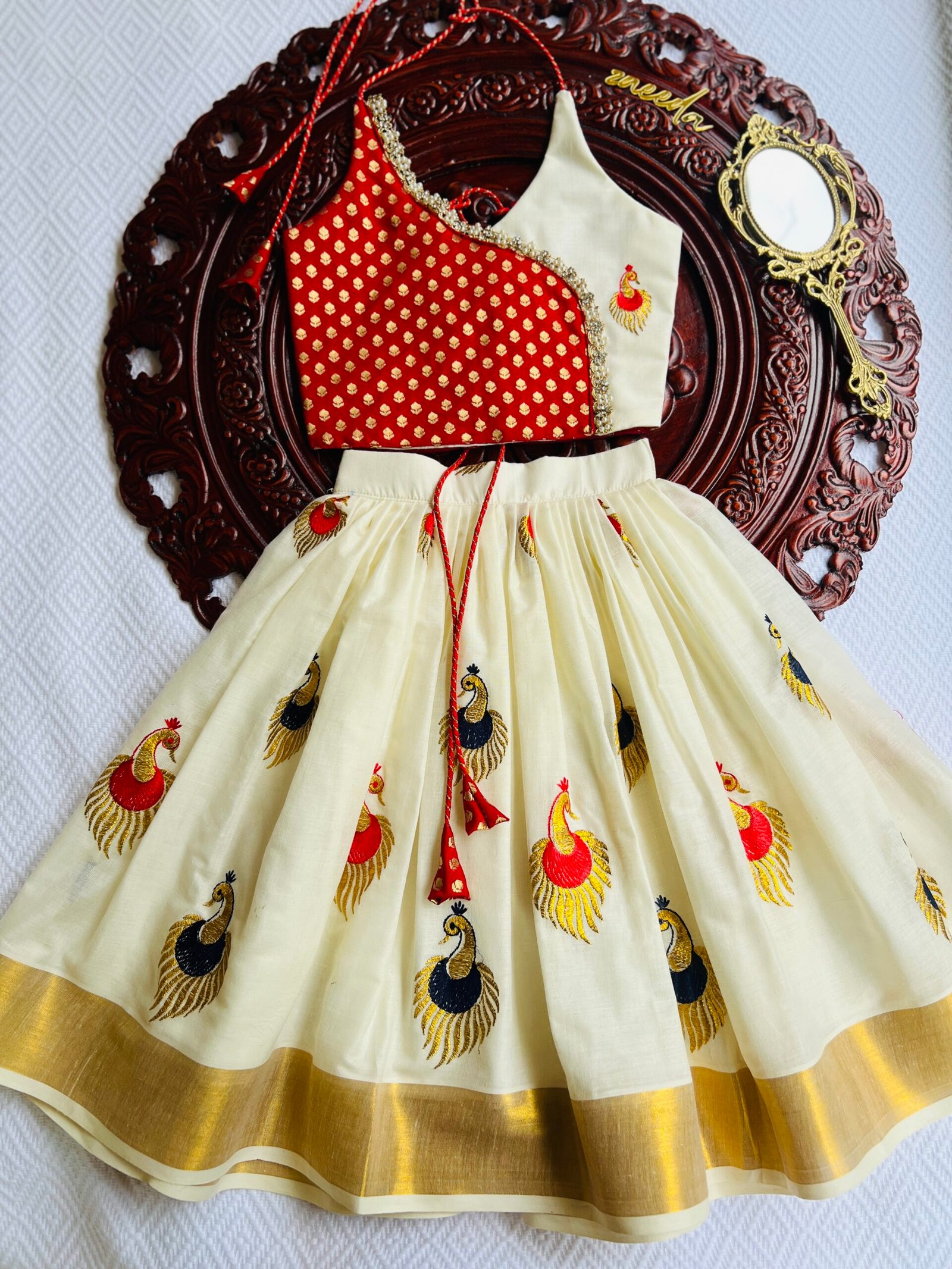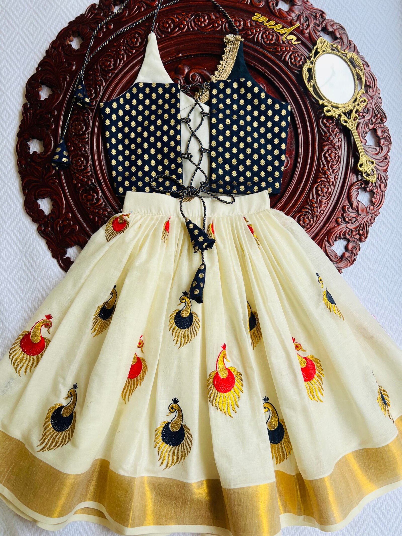 Be the first to review “COTTON KASAVE PEACOCK RED & NAVIBLUE EMBROIDERY”