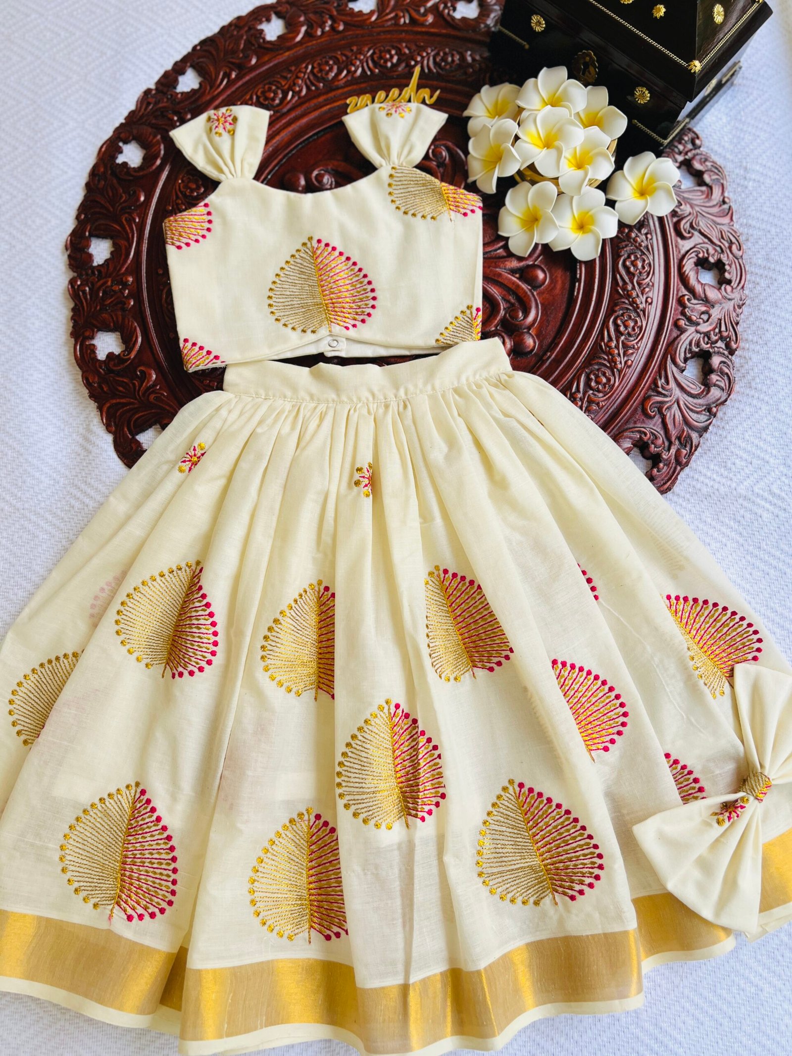 COTTON KASAV LEAFE EMBROIDERY skirt & top