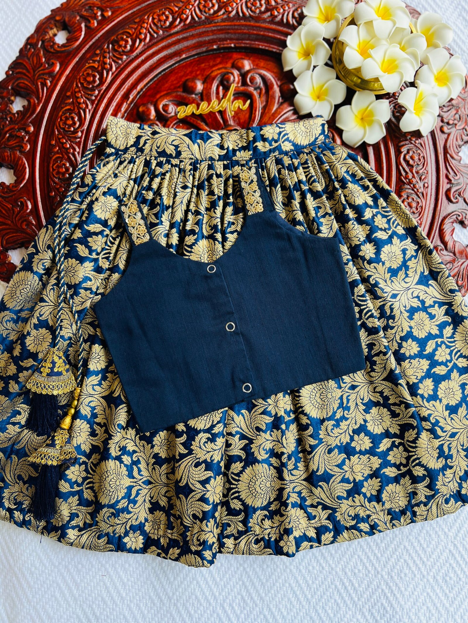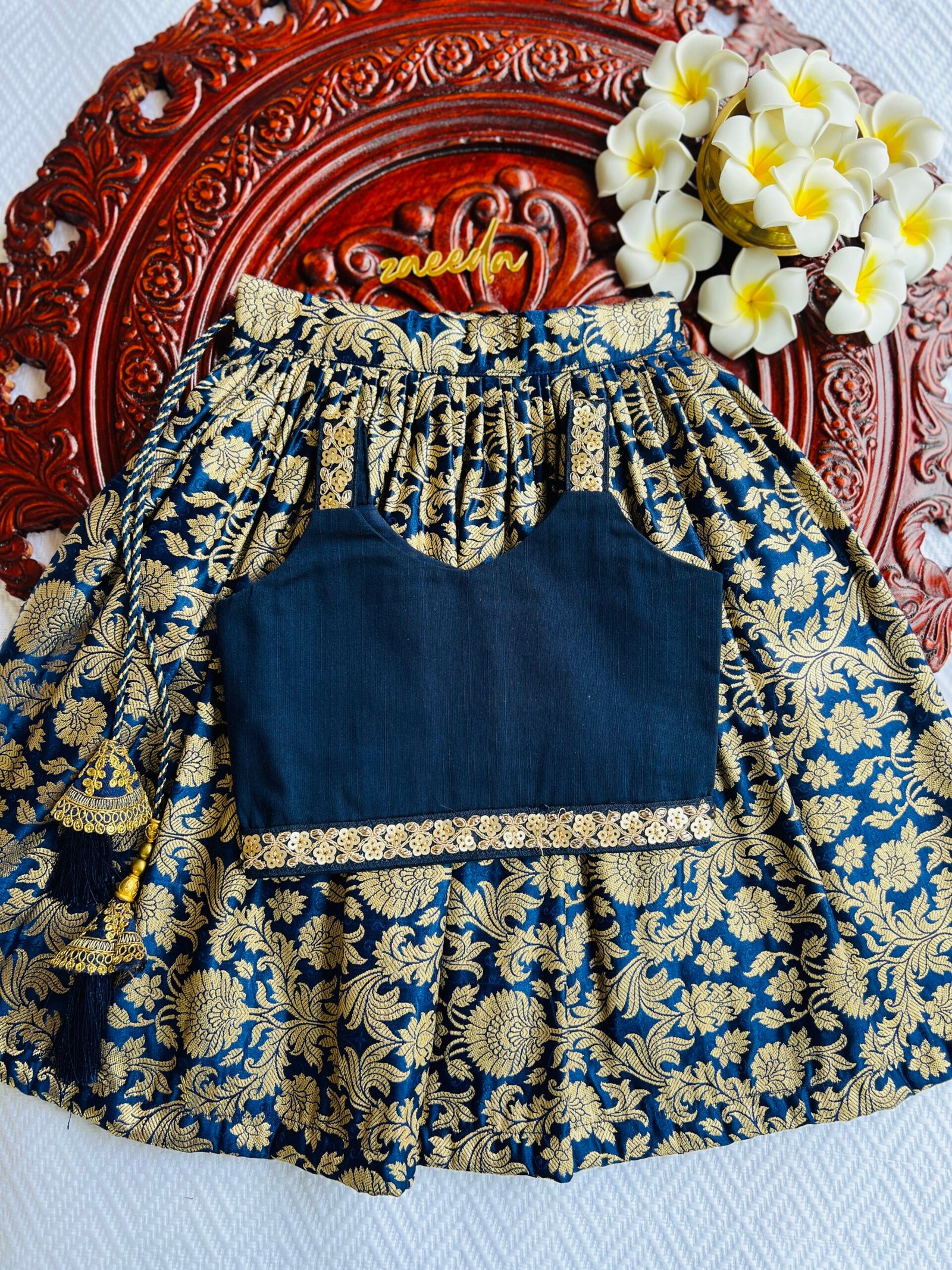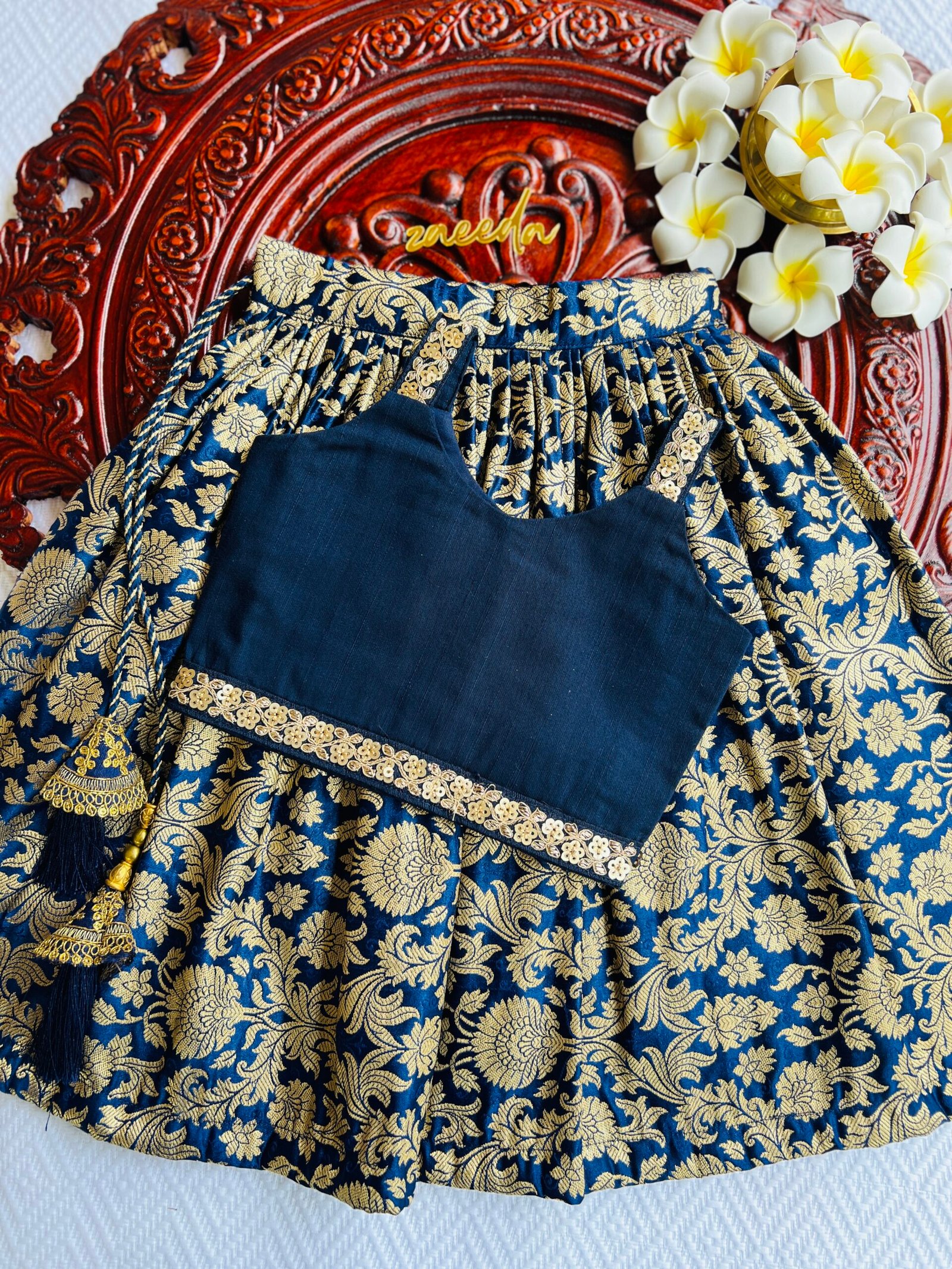 PREMIUM BANARASI SILK NAVI BLUE SKIRT AND TOP