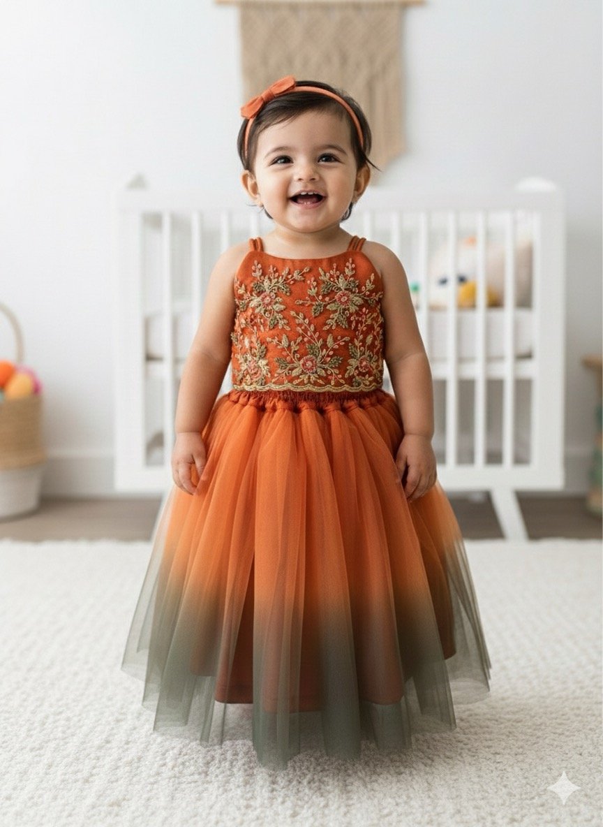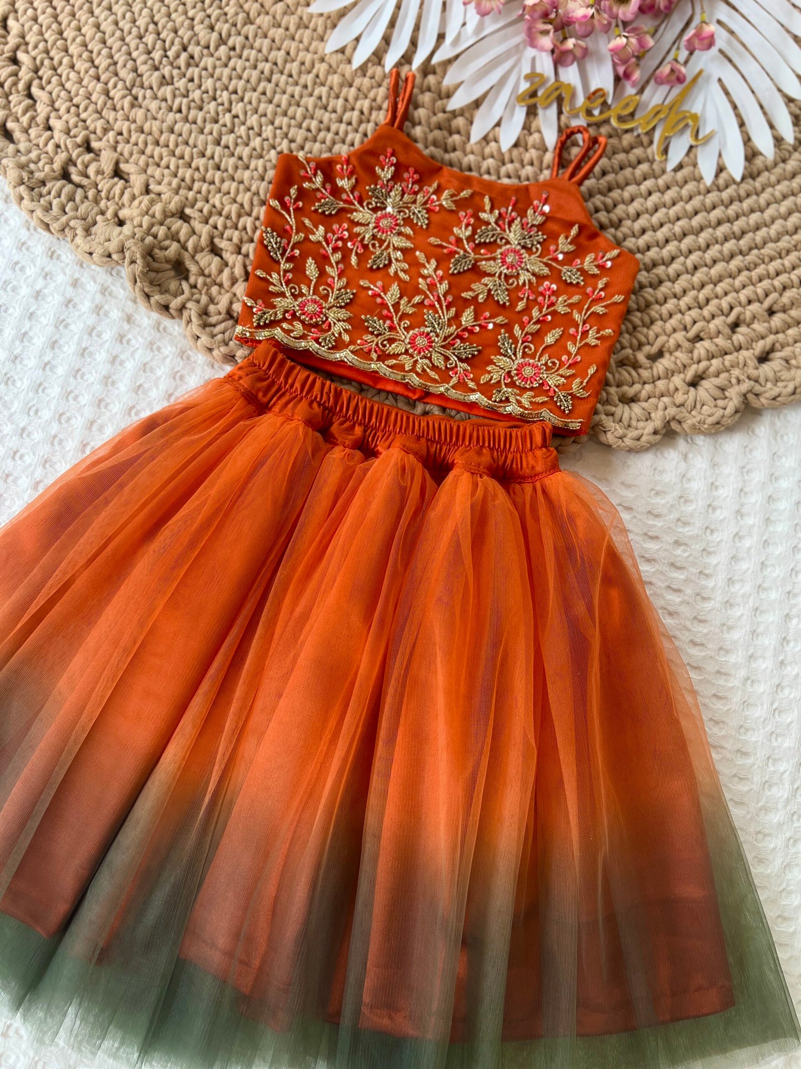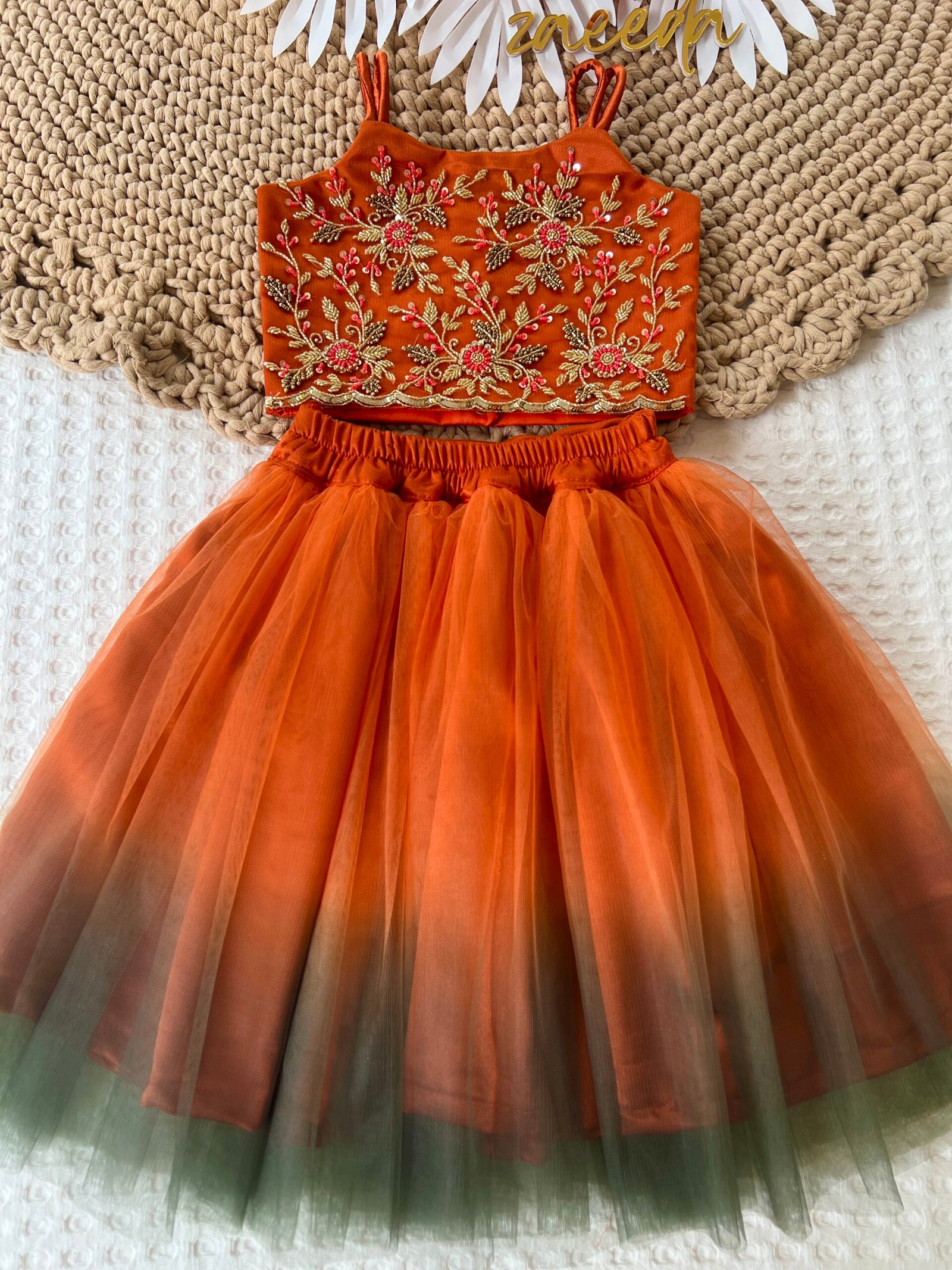 RUST ORANGE HAND WORK SKIRT CROP AND TOP