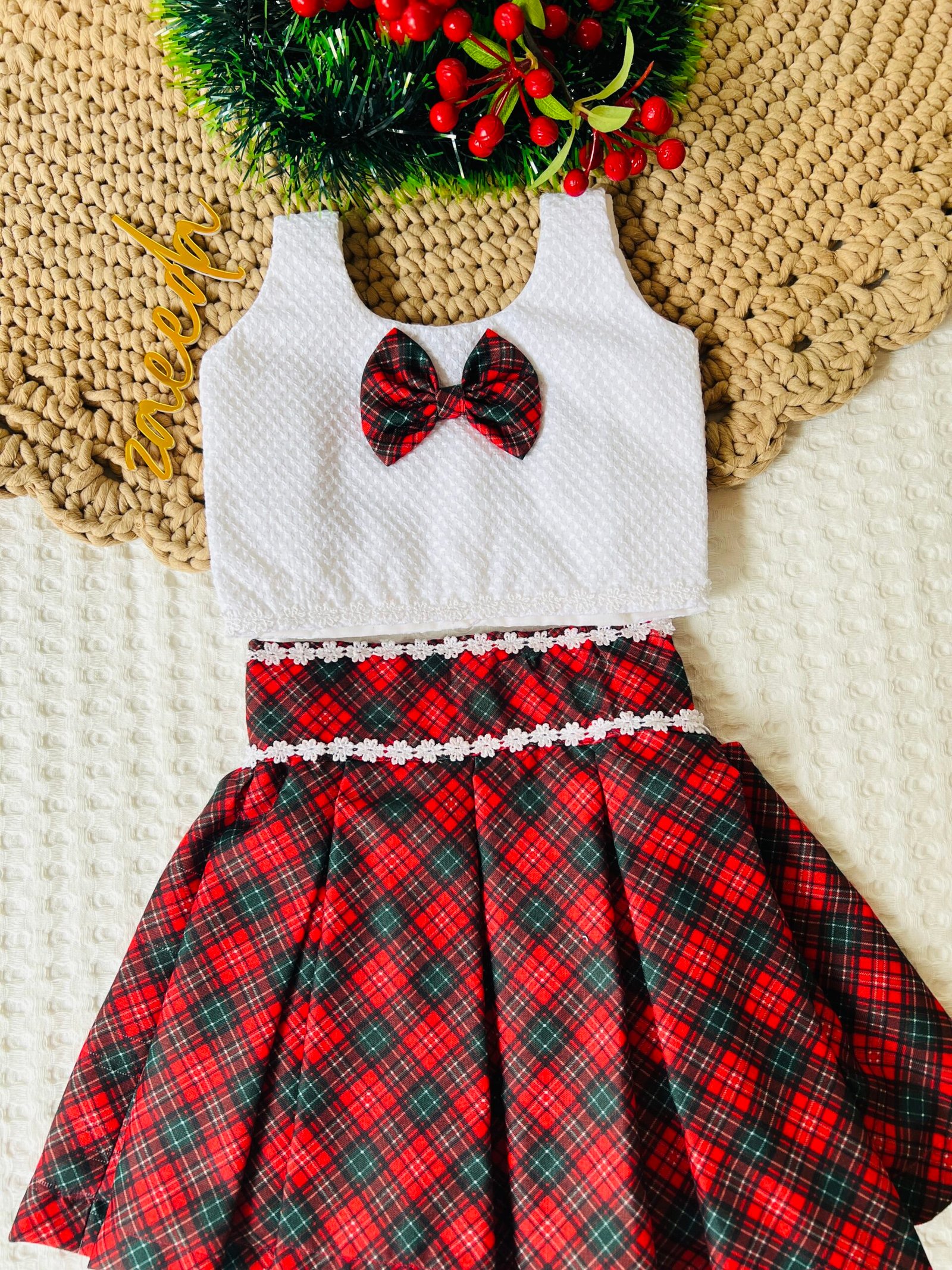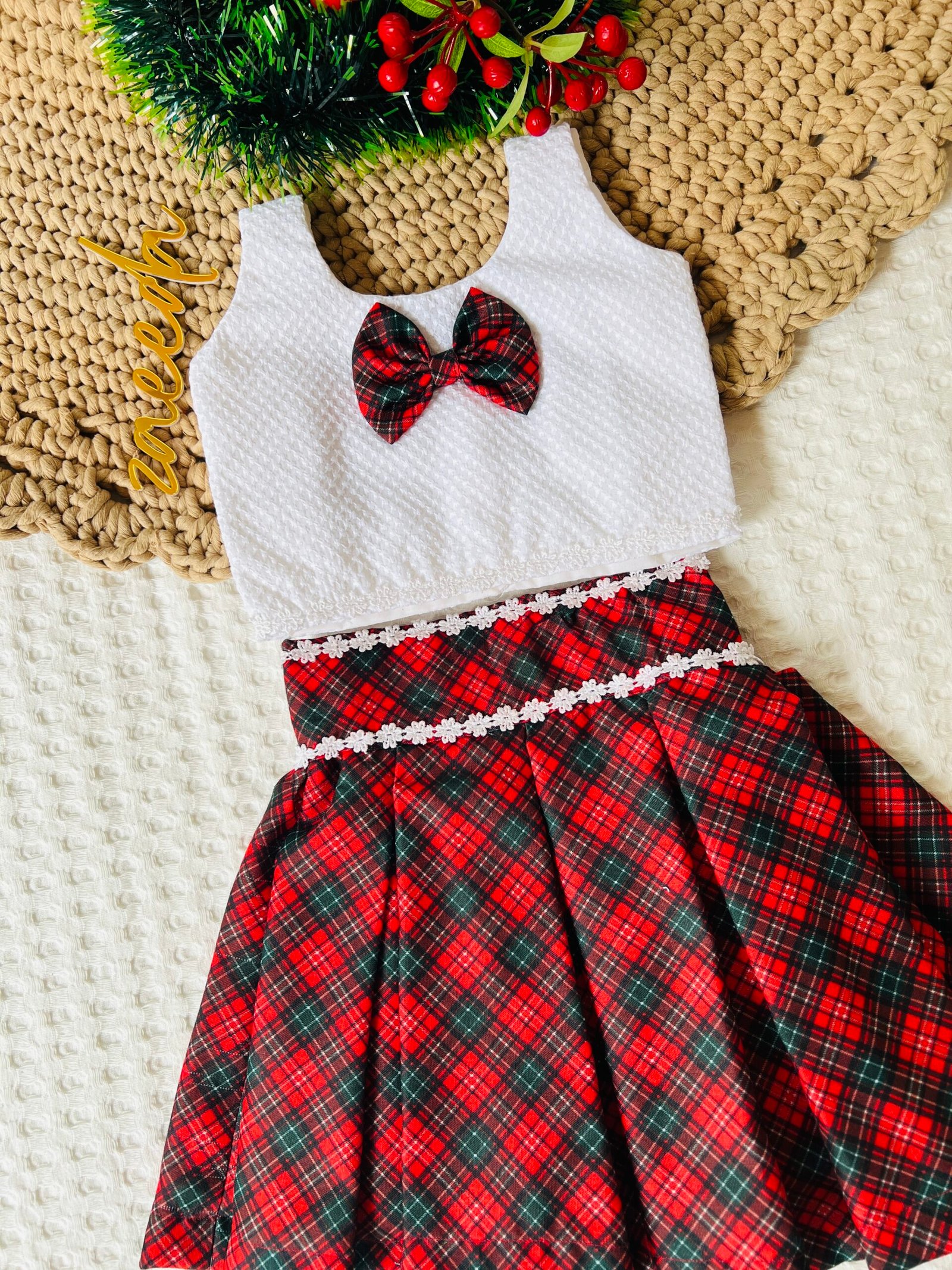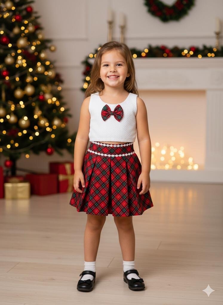 XMAS 2025 COTTON CHECKS SKIRT & HAKKOBA WHITE TOP